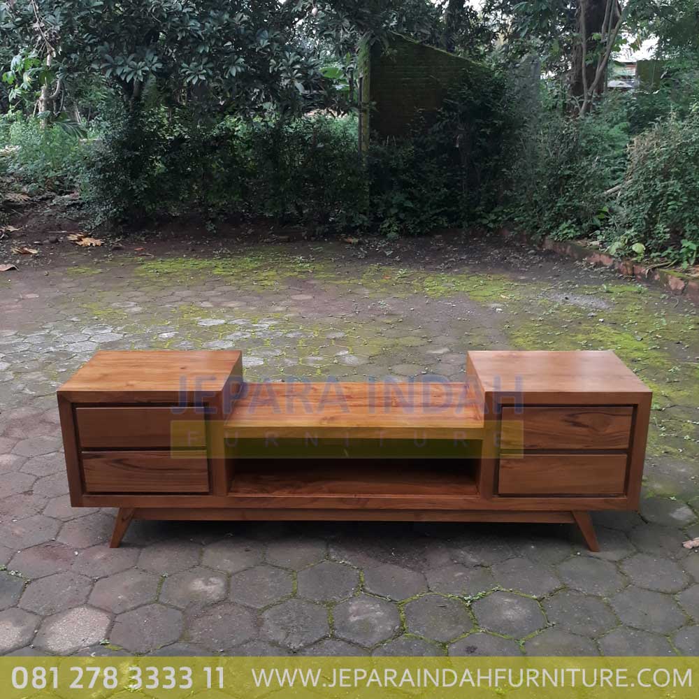 Tv unit yang mempunyai model minimalis retro dari kayu jati pilihan. Sangat cocok untuk interior ruang kamar tidur anda yang moderen dan minimalis semi klasik.