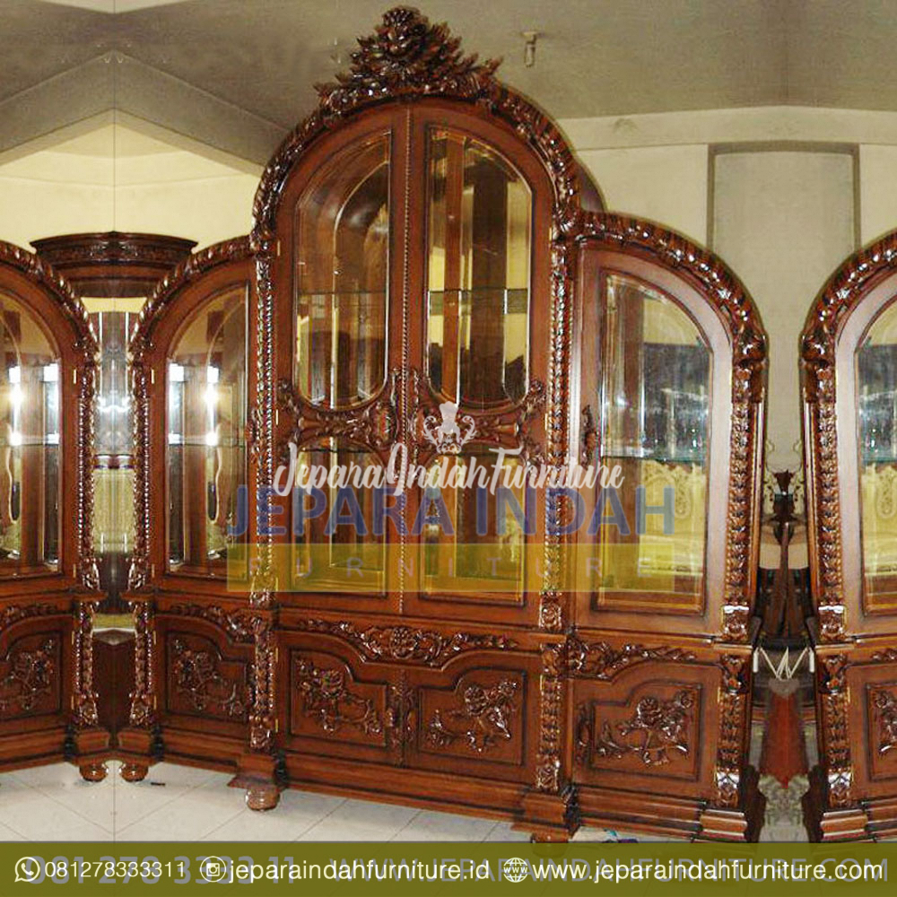 Terbuat dari kayu jati yang berkualitas bagus dan pilihan dan kontruksi kuat, sehingga menghasilkan produk almari pajangan hias yang terjamin kualitasnya.