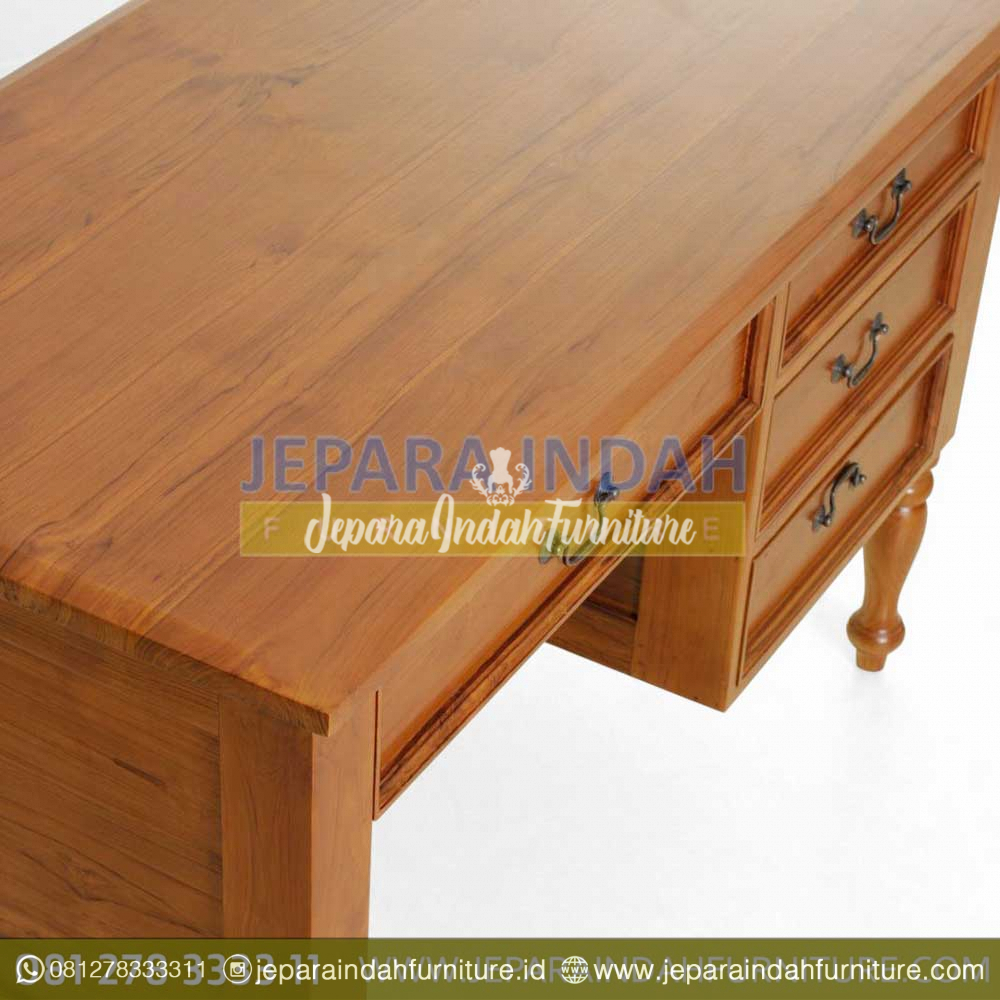 Produk meja tulis kayu jati ini mempunyai desain kolonial dengan hasil finishing yang rapi dan halus. Modifikasi desain antique java menjadikan produk tersebut tampil cantik dan elegant.
