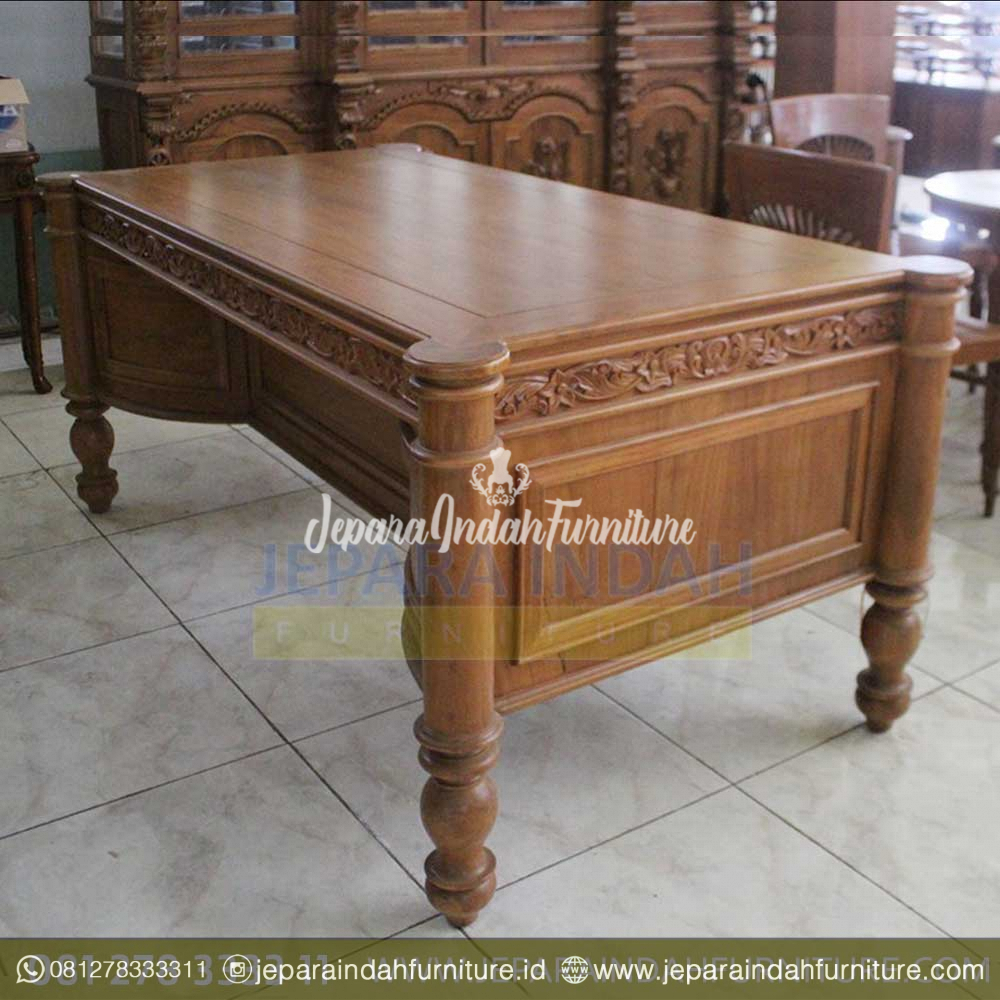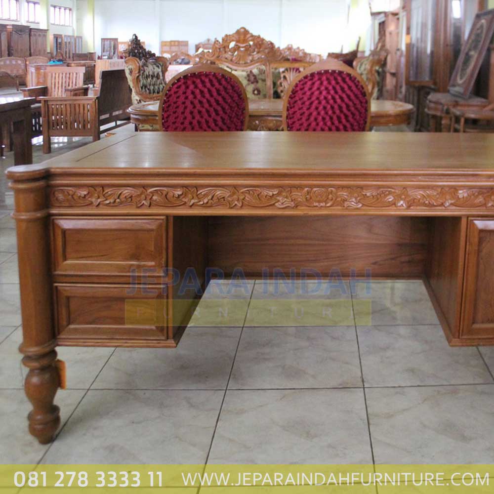 Meja kerja untuk direktur dan direksi ruang kantor yang terbuat dari kayu jati berkualitas bagus dengan model dan desain ukiran mewah yang menjadikan solusi buat anda yang berkeinginan nuansa klasik elegant.