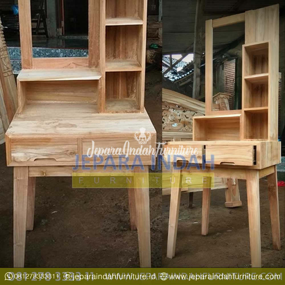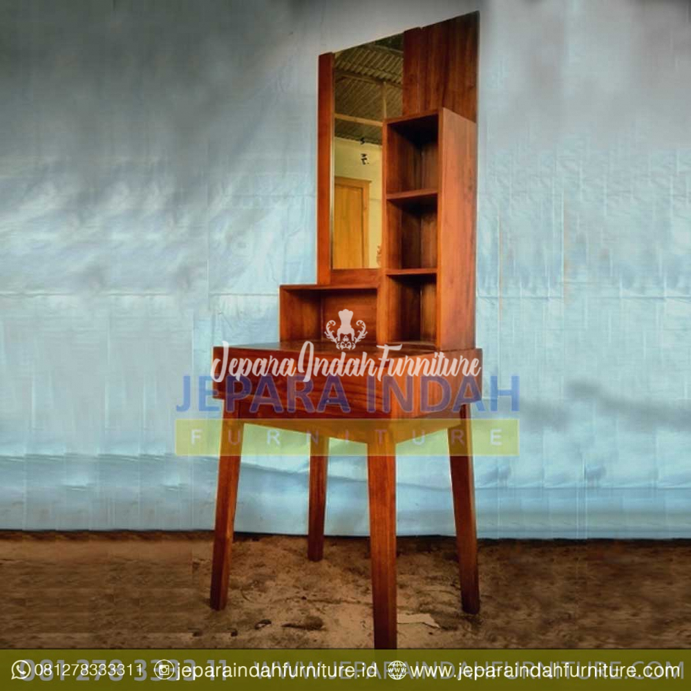 Tolet meja rias model minimalis unik yang terlihat cantik, sangat bagus sebagai solusi untuk kebutuhan riasan anda. Terbuat dari kayu jati yang berkualitas bagus yang akan mempercantik rumah anda.