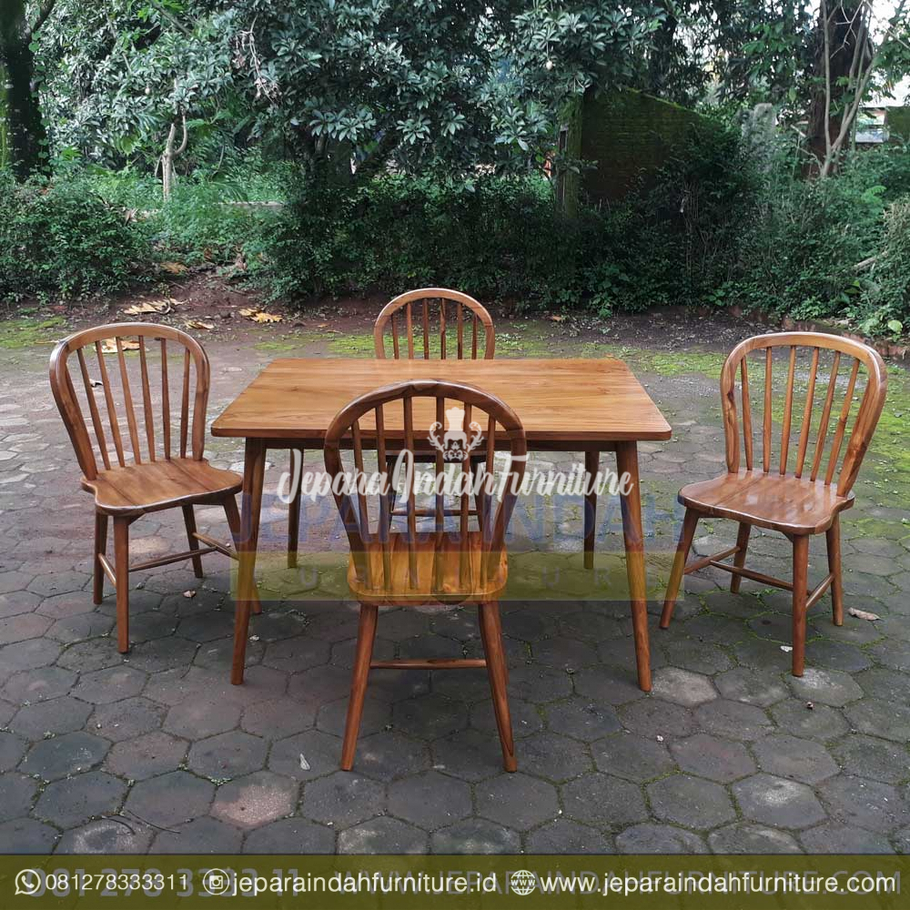 - Kursi set meja makan model minimalis dari kayu jati maupun kayu mahoni yang terlihat lebih moderen dan simple pada desainnya.