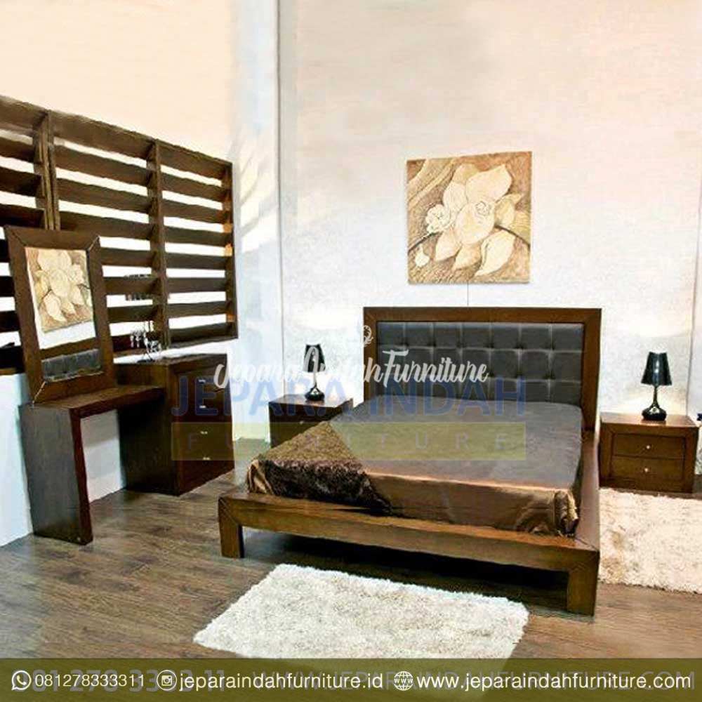 - Set tempat tidur dengan model minimalis dari kayu jati maupun kayu mahoni yang terlihat lebih moderen dan simple untuk mempercantik ruang kamar anda.