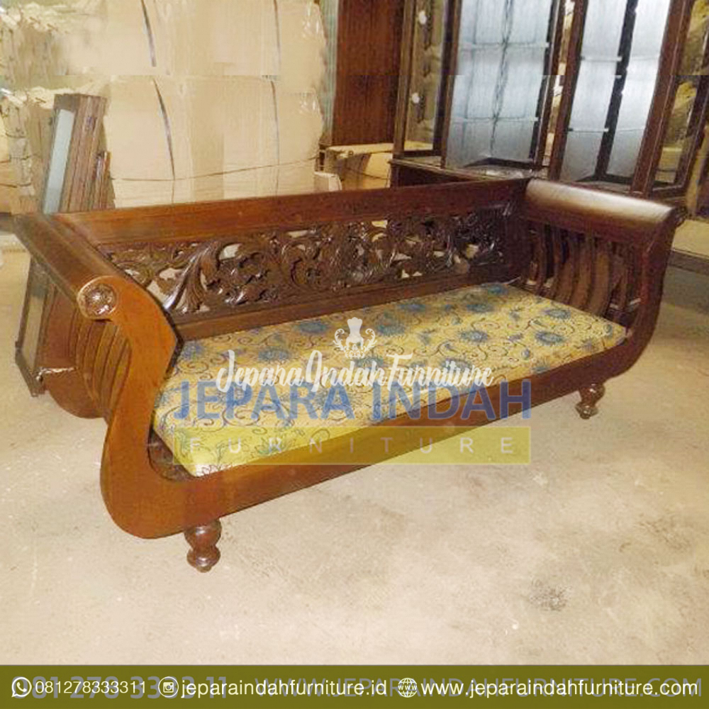 - Sofa bed dengan ukiran klasik dan mewah yang menanjolkan ke-indahan seni pahat dan ukir tangan pada kayu jati maupun kayu mahoni.